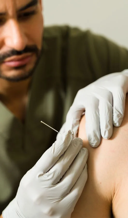 A thin, sterile one time use acupuncture needle is inserted into the targeted muscle. You may feel a brief twitch or a deep ache that settles quickly. The number of areas treated depends on your condition and comfort level.